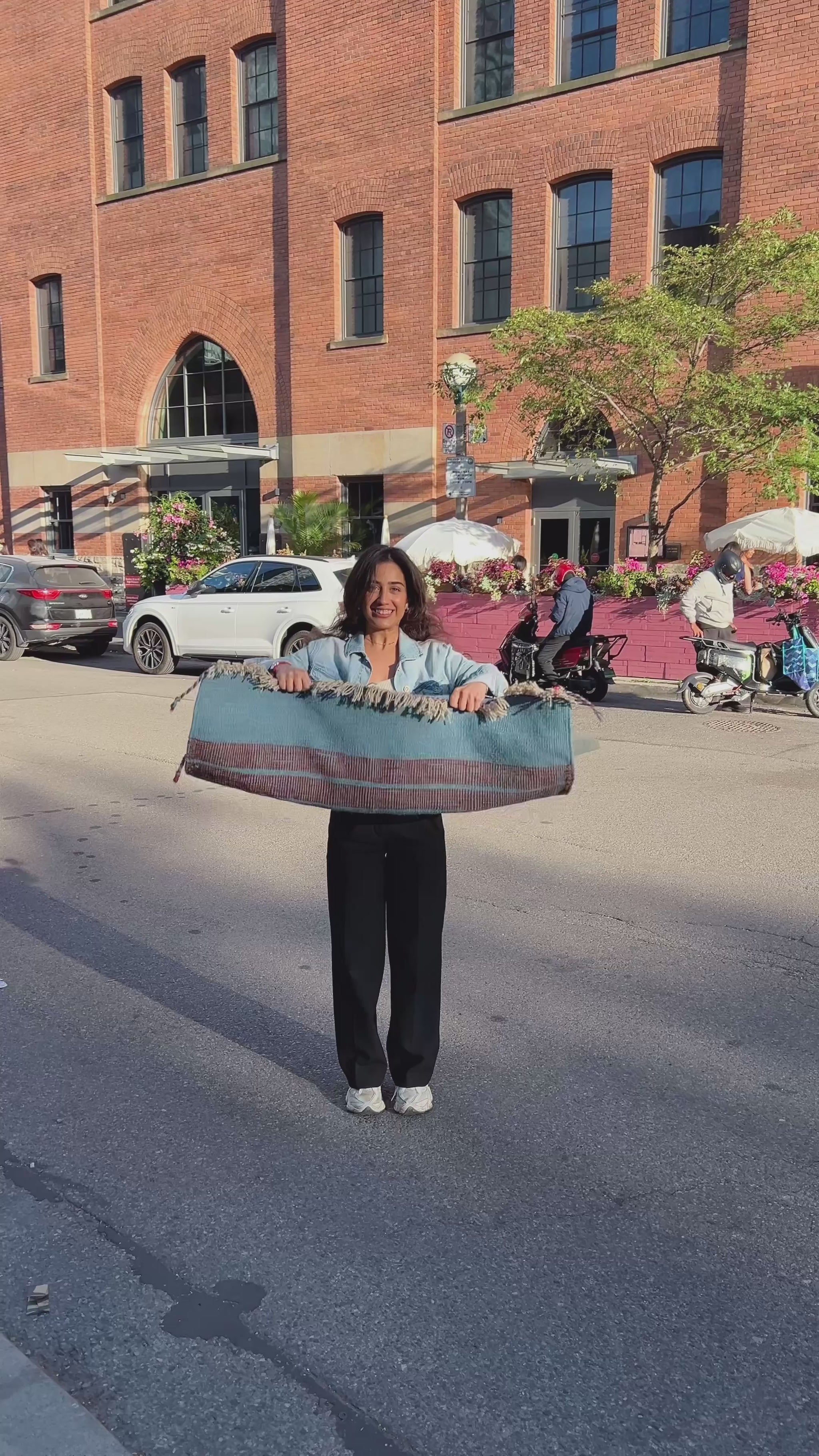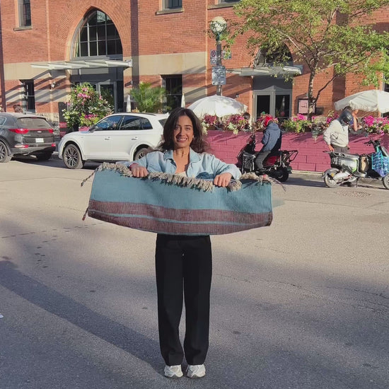 Woven entirely by hand on a horizontal loom, this flatweave embodies the artistry and patience of its makers. The tight weave ensures durability, while the harmonious color palette brings both warmth and tranquility. Versatile in use, it serves beautifully as a decorative accent, a grounding floor piece, or a stylish picnic companion.